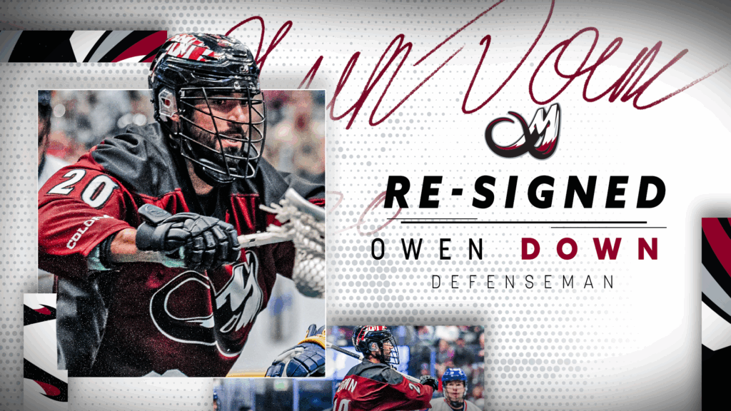 DENVER – The Colorado Mammoth of the National Lacrosse League (NLL) today announced the organization signed defenseman Owen Down to a two-year contract agreement, set to begin during the upcoming 2025-26 campaign.