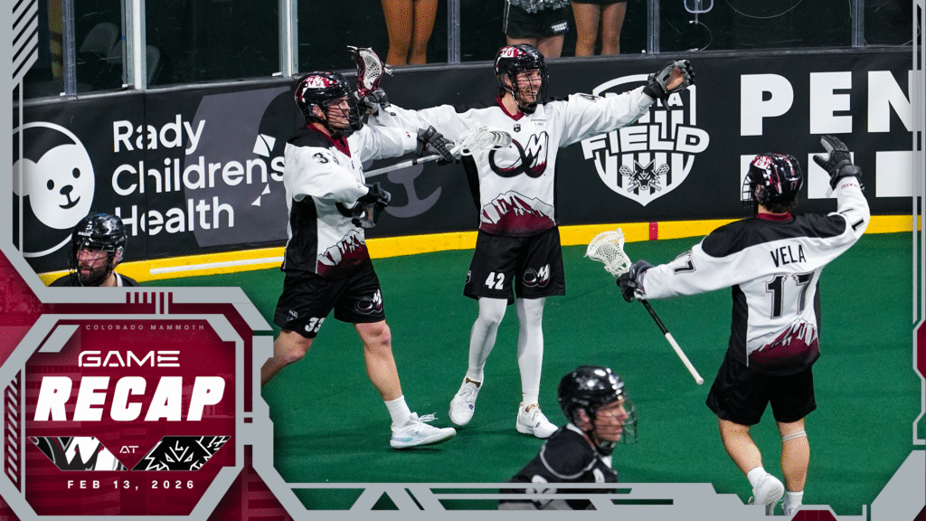 DENVER – The Colorado Mammoth of the National Lacrosse League (NLL) secured a 13-12 victory over the Las Vegas Desert Dogs Friday night at Lee’s Family Forum.